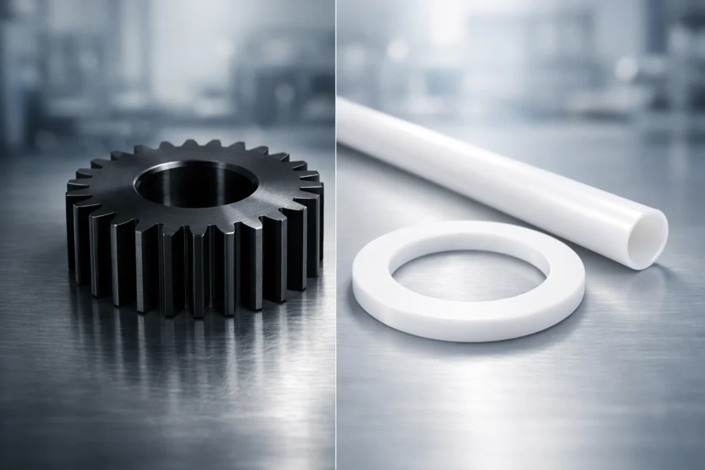 Delrin vs Teflon: Friction, Strength, Temperature, and Machining Differences Quick Answer: When to Choose Delrin vs Teflon Choose Delrin (POM) if your application requires mechanical strength, rigidity, and precision. It is the industry standard for gears, high-load bearings, and parts that must hold tight tolerances. Choose Teflon (PTFE) if you need extreme heat resistance or chemical inertness. It is the superior choice […]